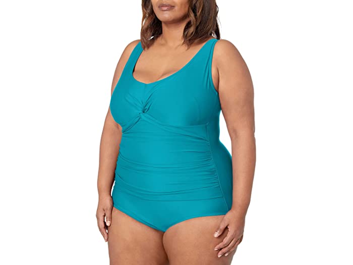 (取寄) マキシン オブ ハリウッド レディース ウィメンズ プラス-サイズ Vネック シャード ツイスト フロント ワン ピース スイムスーツ Maxine of Hollywood women Womens Plus-Size V-Neck Shirred Twist Front One Piece Swimsuit Emerald/Solids