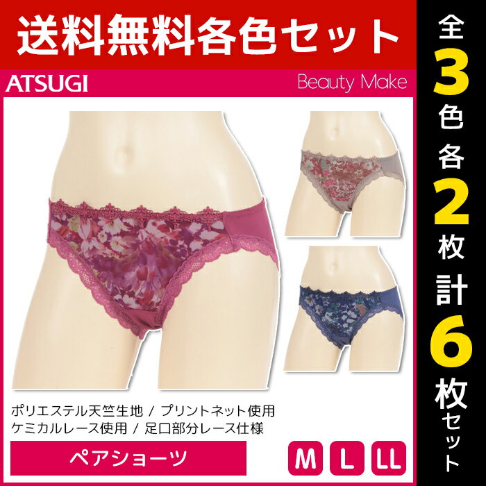 3色2枚ずつ 送料無料6枚セット Beauty Make ビューティメイク 上向きバスト ペアショーツ ショーツ アツギ ATSUGI | レディース レディス 女性 パンツ パンティ パンティー ぱんつ レース かわいい おしゃれ セクシー レースショーツ 下着 可愛いショーツ レディースショーツ