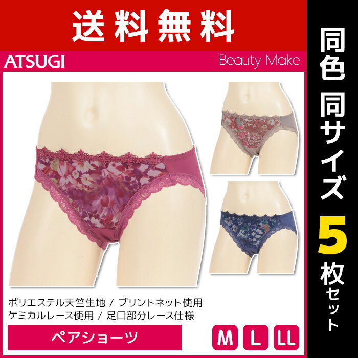 送料無料 同色5枚セット Beauty Make ビューティメイク すっきり着痩せ ペアショーツ ショーツ アツギ ATSUGI | レディース レディス 女性 パンツ パンティ パンティー レース かわいい おしゃれ セクシー レースショーツ 下着 可愛いショーツ 女性下着 レディースショーツ