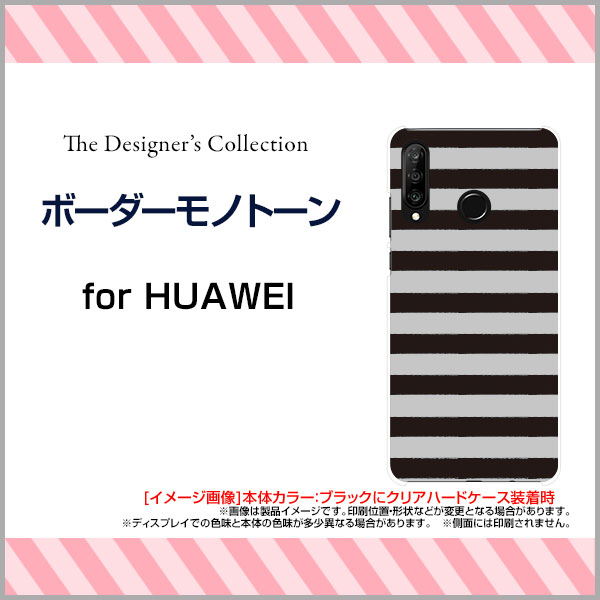 液晶保護ガラスフィルム付 HUAWEI P30 lite Premium ファーウェイ ピーサーティ ライト プレミアム[HWV33]auボーダーモノトーン[ スマホカバー 携帯ケース 人気 定番 ]