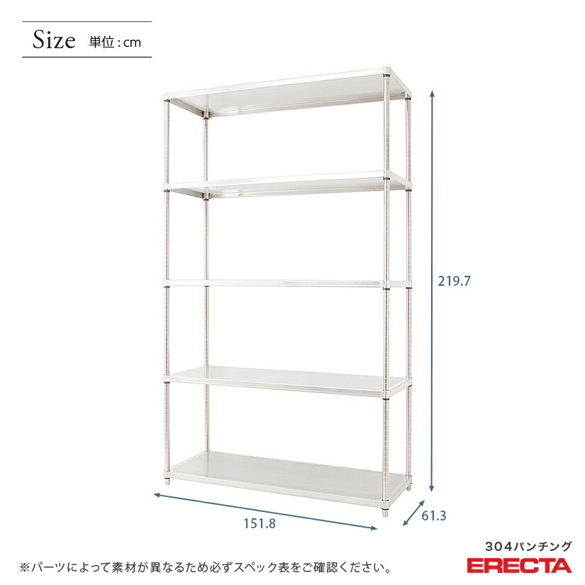 【送料無料】 【受注生産】 エレクター ERECTA パンチングソリッド W1518xD613xH2197mm PSポール DB付 5段 supererecta スチールラック