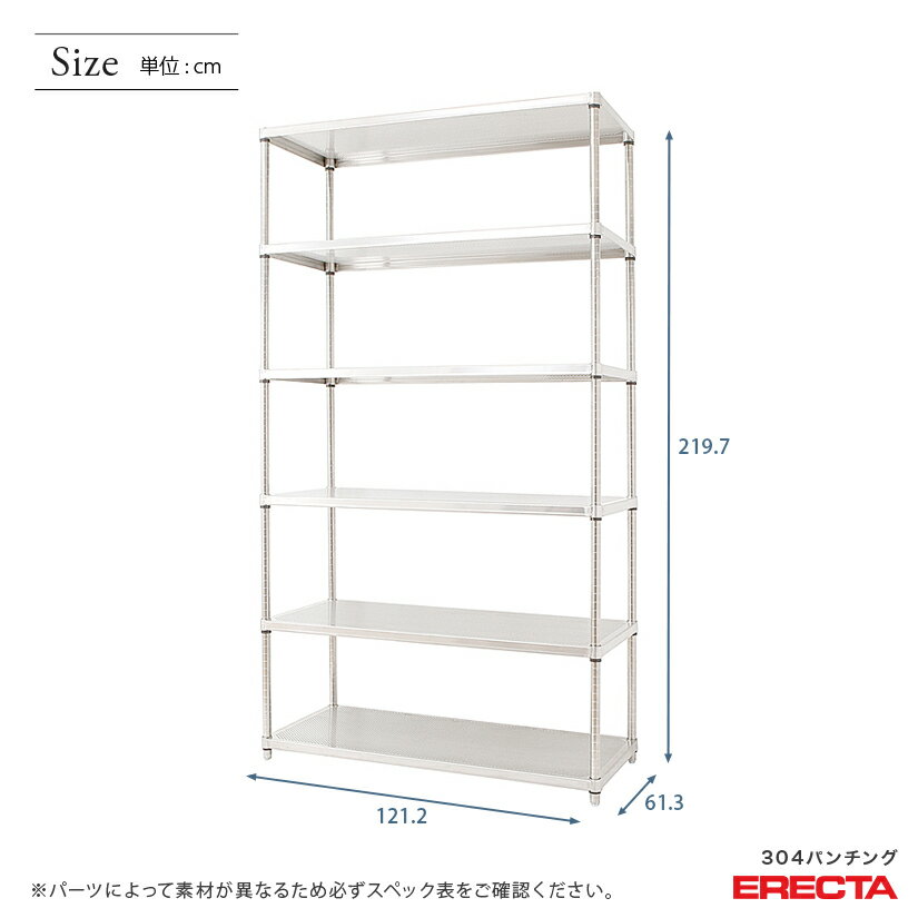 【送料無料】 【受注生産】 エレクター ERECTA パンチングソリッド W1212xD613xH2197mm PSポール DB付 6段 supererecta スチールラック