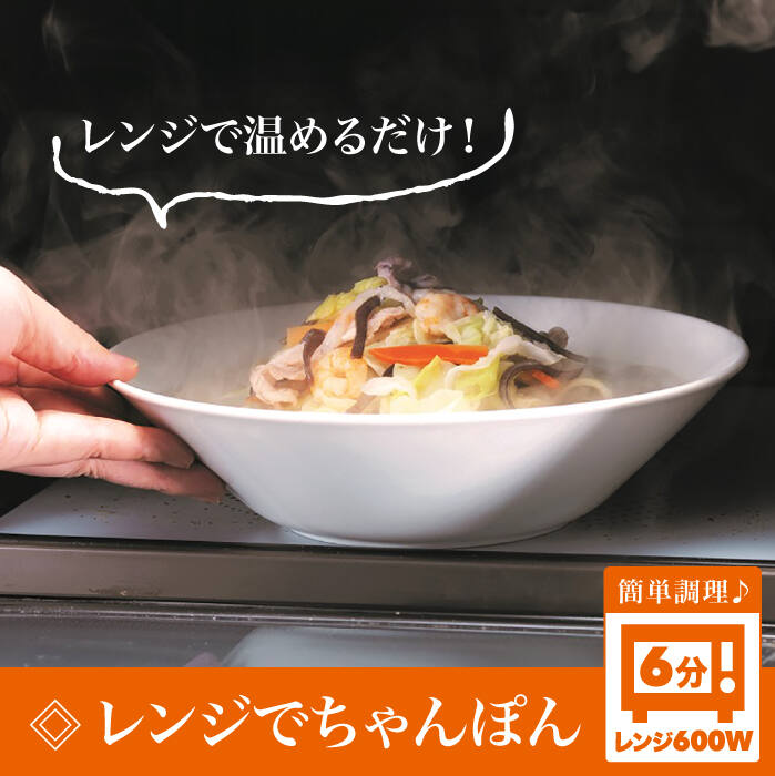 具材付きで長崎の味がすぐに楽しめます! みろくやのちゃんぽんが電子レンジで温めるだけで簡単に召し上がれる「レンジでちゃんぽん」新登場! シャキシャキとした食感のたっぷり野菜と、エビ・イカなどが入っているので食べ応え抜群です。