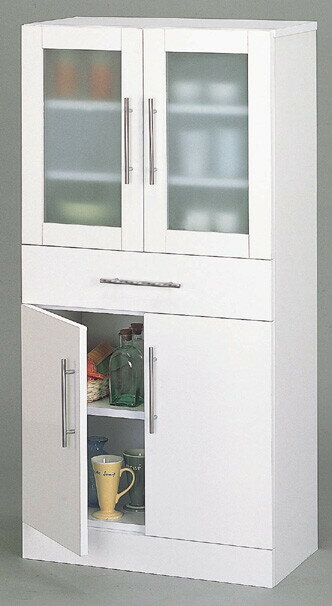 送料無料 食器棚 幅60cm スリム カップボード キッチンボード ガラスキャビネット ホワイト 白 キッチンラック カトレア ロータイプ シンプル おしゃれ
