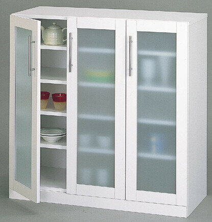 送料無料 食器棚 幅90cm スリム カップボード キッチンボード ガラスキャビネット ホワイト 白 キッチンラック カトレア ロータイプ シンプル おしゃれ