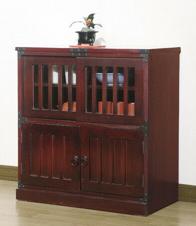 送料無料 民芸調 水屋 和モダン家具 おしゃれ レトロ 水屋箪笥 食器棚 サイドボード ロータイプ キッチンボード カップボード キャビネット リビングボード 完成品 収納棚